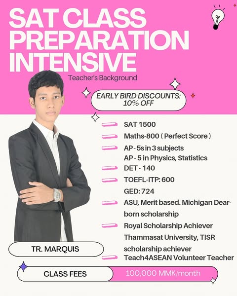 သင်ကြားမှာက SAT English: Reading & Writing , SAT Maths: Entire Course ဖြစ်ပါတယ် 👨🏻🏫