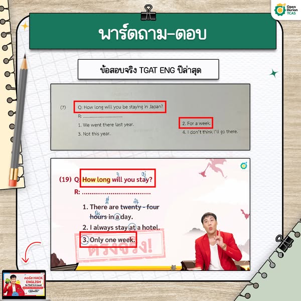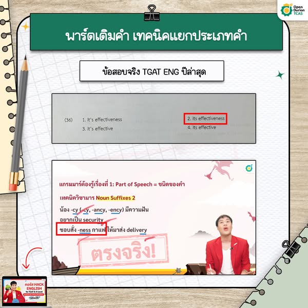 搜索关键词 TGAT ENG Prep, Exam Preparation, OpenDurian Course, Thai Education, Test Techniques, English Exam, Proven Results, Expert Instructor, University Admission, Exam Success优势 Accurate Prediction of Exam Content,Proven Success Record,Comprehensive Coverage of Exam Sections,Practical Exam Techniques,Expert Instructor