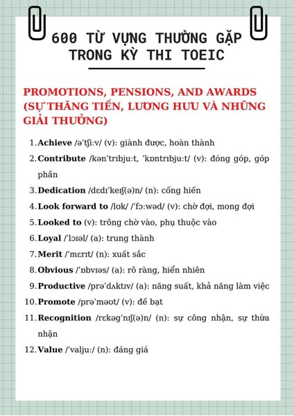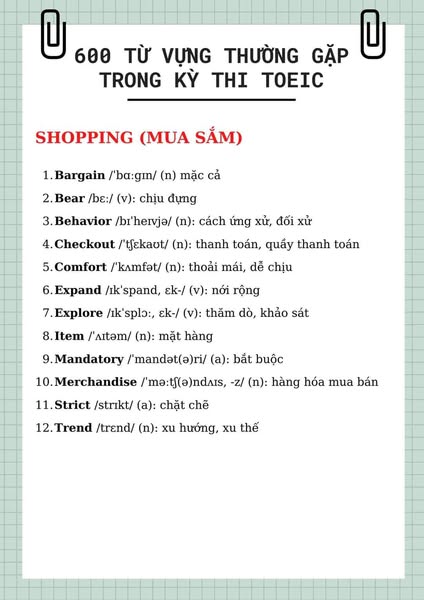 🎯 Full 50 chủ đề, 600 từ vựng thường gặp trong kỳ thi TOEIC (chưa full) 🎯