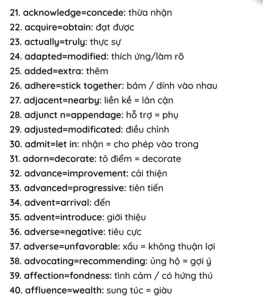 Dưới đây là 500 từ đồng nghĩa hay gặp trong các đề thi các bạn lưu lại học nhé!