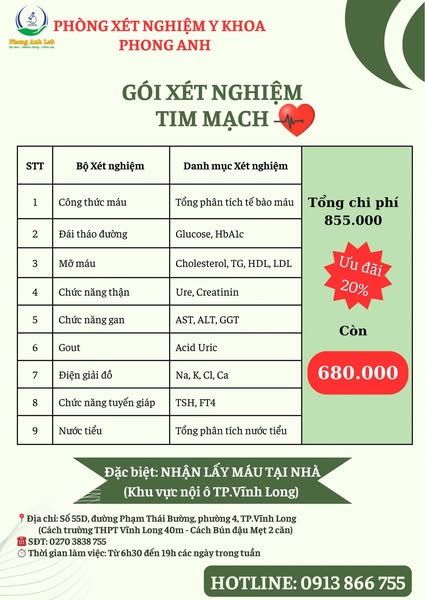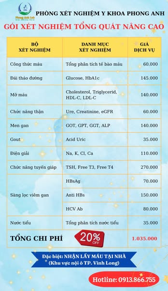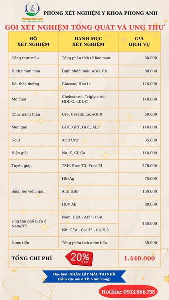 搜索关键词 Cancer screening Vietnam, Medical testing Vinh Long, Early cancer detection, Phong Anh Lab, Home sample collection, Health checkup Vietnam, medical examination package, medical laboratory, medical testing service, medical testing优势 Convenient locations in Vinh Long,Home sample collection service,Extended working hours,Early cancer detection