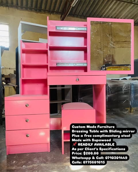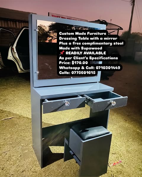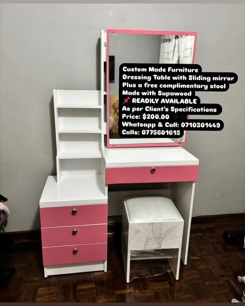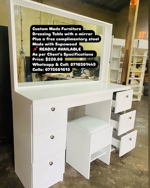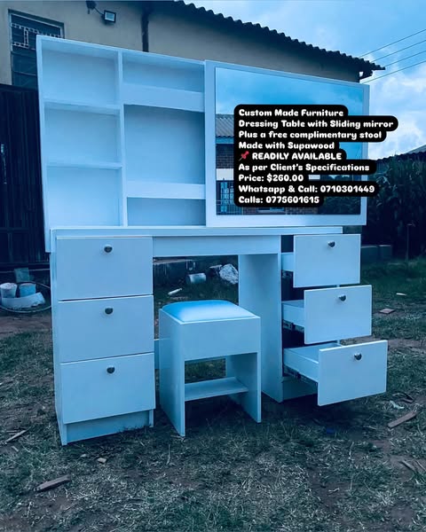 搜索关键词 custom made furniture, furniture design, dressing table, nail desk, payment on delivery, Zimbabwe furniture, Harare furniture, home decor, interior design, woodwork优势 Custom Designs,Delivery Available,Payment on Delivery,Readily available