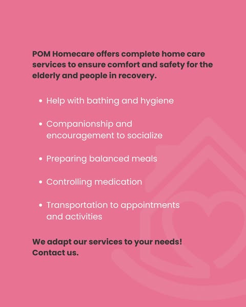 At POM Homecare, we offer humanized and personalized care to ensure comfort, safety and quality of life for those you love. With dedication and affection, we are here to help you on a daily basis.