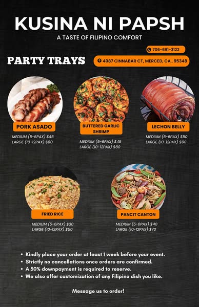 搜索关键词 Filipino food Merced, Filipino cuisine delivery, Fresh Filipino food, Free delivery food, Merced CA restaurants, Asian cuisine delivery, Filipino takeout, Filipino food near me, Filipino catering Merced, Filipino food bank transfer优势 Freshly cooked daily,Free delivery for 3+ orders,Multiple payment options,Pick-up available