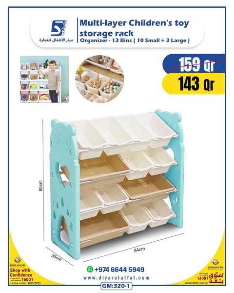 搜索关键词 home organization, storage solutions, space saving, kitchen storage, bathroom storage, kids storage, Diyar Al Atfal,Qatar shop, online shopping, affordable organization优势 Space-saving design,Versatile storage options,Easy to assemble,Discount up to 170 Riyal