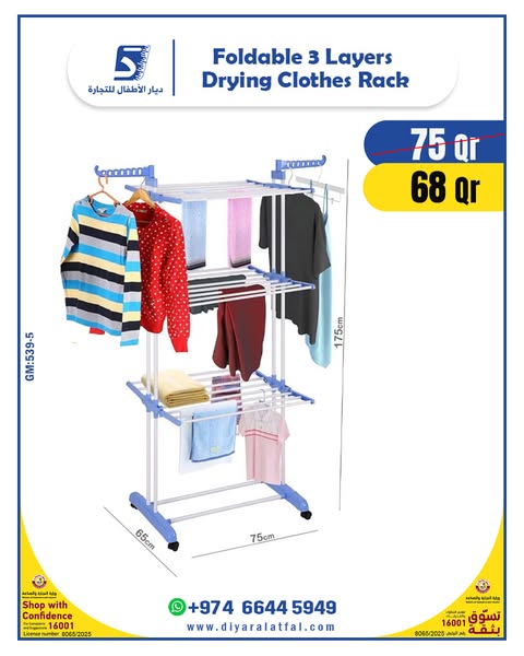 🧺 ستاند غسيل بـ 3 طبقات قابل للطي