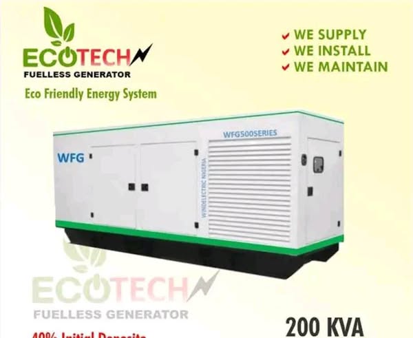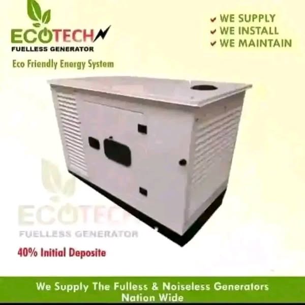 Ecotech Fuelless/Noiseless Generator Now Available In Nigeria, 6kva, 8kva, 12k 15kva. Call OR WHATSAPP: FOR MORE INFORMATION AND ENQUIRIES ON +2349168497875