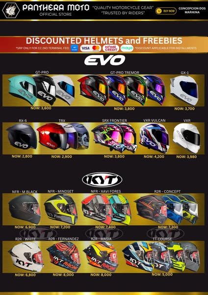 Nandito na ang inyong inaabangan na DISCOUNTED HELMETS with FREEBIES.!!!😍😍😍 Dito lang yan sa PANTHERA MOTO CONCEPCION DOS!!! Punta na habang may stock pa!!!