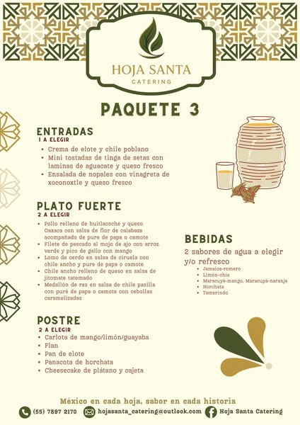 🔥 Paquete 3 – Nuestra opción más especial, con platillos más elaborados, presentación cuidada y un menú con toques gourmet.