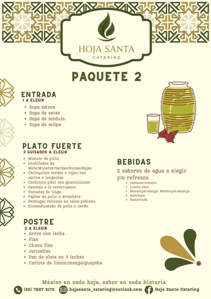 搜索关键词 mexican catering, event catering, cdmx catering, traditional food, gourmet options, party catering, affordable catering, hojasanta catering, wedding catering, corporate events优势 Authentic Mexican Cuisine,Customizable Packages,Suitable for Various Events