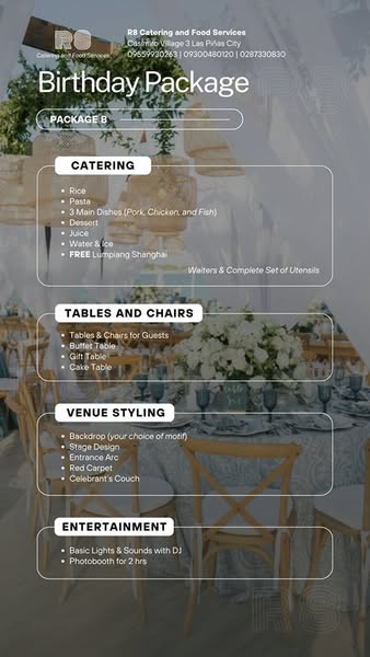 Hello guys. Check out our packages. 😀 We cater to all kinds of events. Book Now! And take advantage of our freebies. 🥳