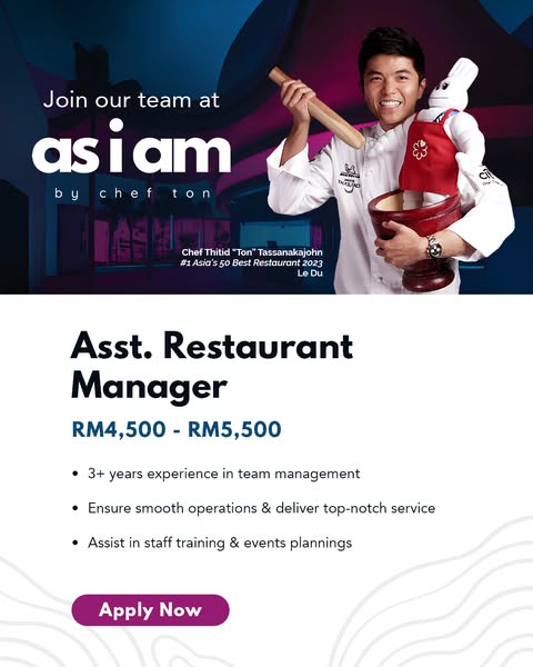 搜索关键词 Restaurant Hiring, Kuala Lumpur Jobs, Chef Ton Restaurant, As I Am Restaurant, Kitchen Staff Recruitment, Hospitality Careers, New Restaurant Opening, KL Restaurant Jobs, Passionate Chef, Driven Individuals优势 Opportunity to work with a renowned chef,Be part of a new, exciting restaurant launch,Chance to contribute to building something iconic,Potential for career growth in the hospitality industry