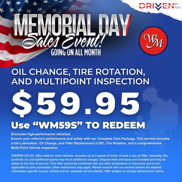 #MemorialDaySavings #WaltMasseyFranklinton #SaturdayService #RemoteService #FinanceYourFix #AllMakesAndModels #AutoCare #DrivenByYou #ServiceYouCanTrust #WaltMasseyAutoGroup