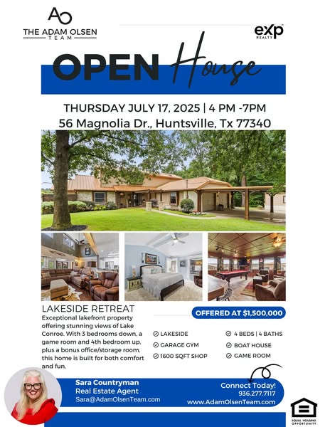 搜索关键词 Lake Conroe real estate, luxury lakefront property, Huntsville TX homes, waterfront estate, Texas lake house, boat house property, Sam Houston National Forest homes, high-end residential real estate, open house Huntsville, lakeside living优势 Stunning lake views,Spacious boat house,Climate-controlled billiard room,Versatile garage/gym space,Never flooded