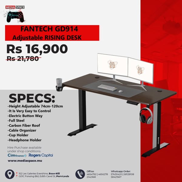 搜索关键词 Fantech Esports equipment, Gaming desk Mauritius, Best price gaming, Gaming accessories sale, Playstation Mauritius, MediaSpace gaming, Limited stock gaming, Gaming setup upgrade, Mauritius gaming store, Fantech gaming优势 Premium quality gaming equipment,Adjustable height gaming desks,Best price in Mauritius guaranteed,Available in multiple locations