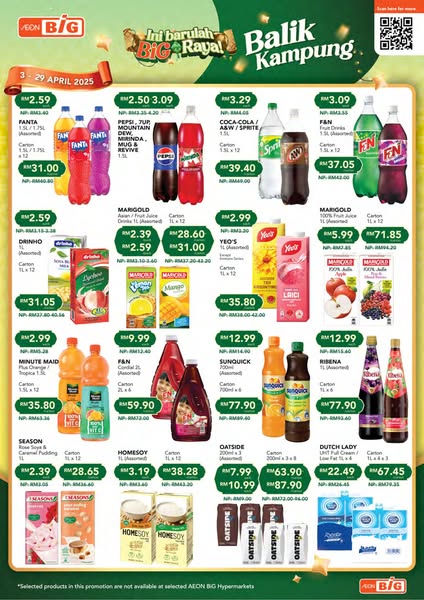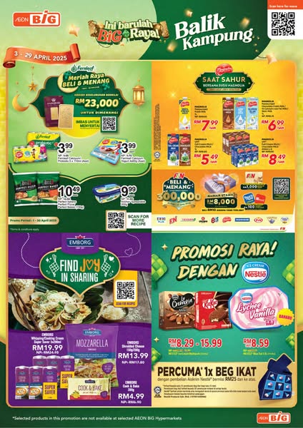 AEON BiG ada harga jimat untuk anda! So, jom shopping dari sekarang hingga 29 April 2025 supaya sambutan Raya anda terus meriah!