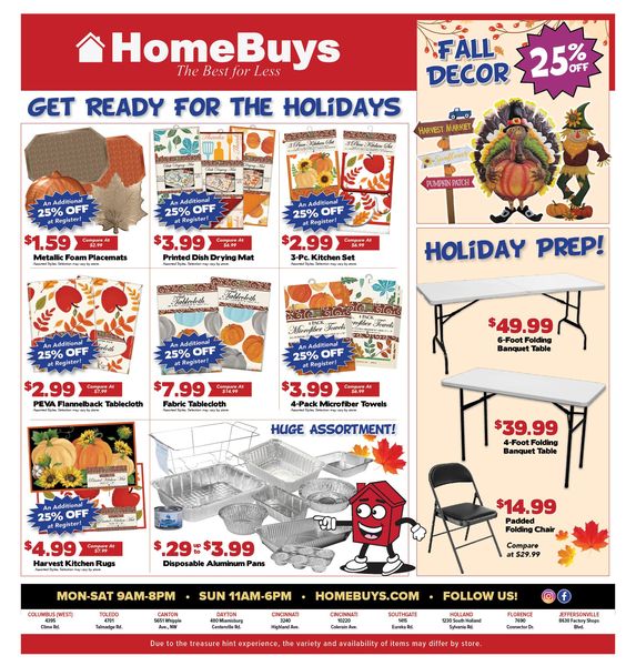 #HomeBuysDeals #DiscountDeals #SavingsAlert #ExclusiveDeals #BigSavings #UniqueFinds #GreatDeals #FallDecor #FallEssentials #Thanksgiving #HomeEssentials #ExclusiveOffers #FamilySavings #HolidayPrep #HolidaySeason