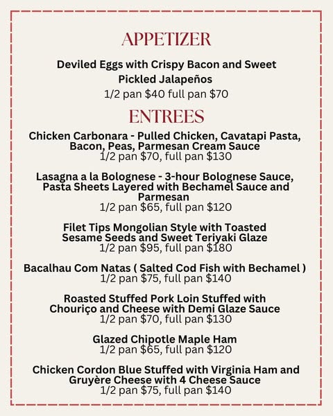 搜索关键词 Holiday Dinner Catering, Christmas Eve Platters, New Year's Eve Food, Convenient Holiday Meals, Catering Services, Holiday Catering Menu, Christmas Dinner Delivery, New Year's Party Food, Pre-made Holiday Meals, Festive Catering Options优势 Convenience for holiday meals,Exclusive platters for special occasions,Saves time and effort on cooking