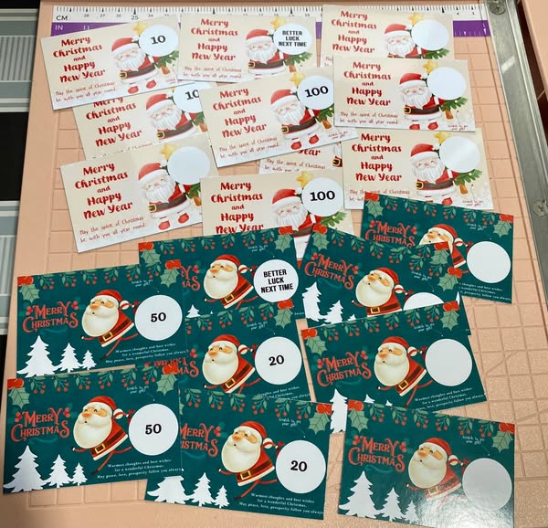 搜索关键词 Christmas scratch cards, holiday giveaway cards, employee Christmas gifts, customer appreciation gifts, christmas party favors, customizable holiday cards, cheap christmas cards, christmas promotion cards, company christmas gifts, custom christmas cards优势 Affordable Price,Different Designs Available,Perfect for Christmas Parties,Suitable for Employee/Customer Giveaways,Fully Customizable