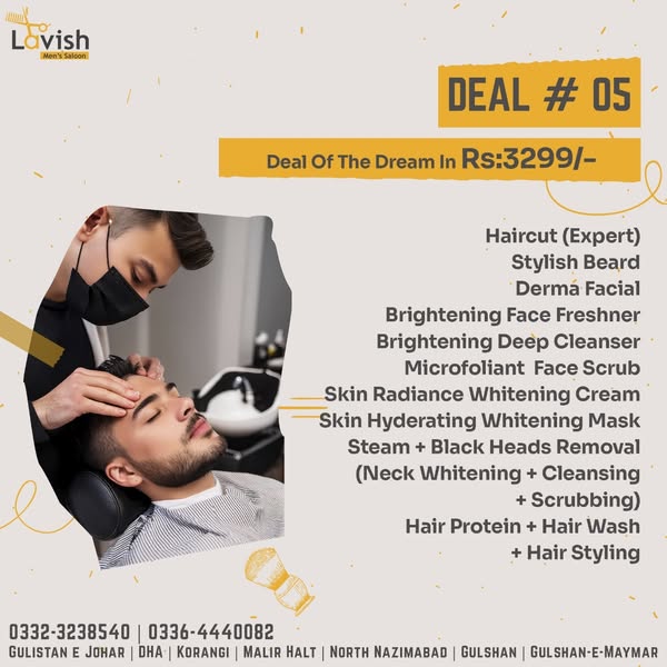 搜索关键词 men's grooming, saloon deals, Pakistan salon, haircut package, lavish saloon, best service, discount offers, best prices, new look优势 Discounted prices,Variety of services,Convenient packages