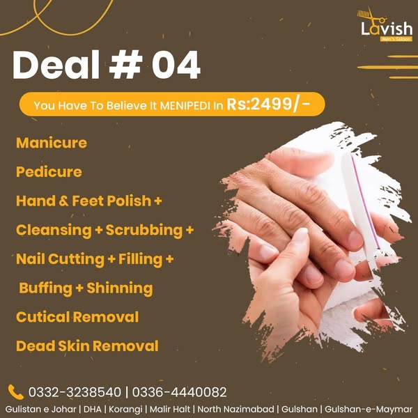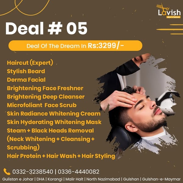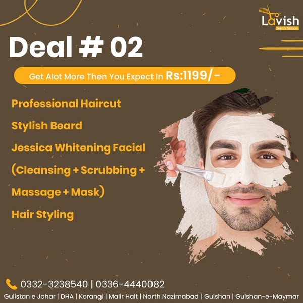 搜索关键词 Men's Grooming, Salon Deals, Lavish Saloon, Pakistan Salon, Discounted Services, Barber Shop, Haircut Deals, Beard Trim, Facial Treatment, Men's Hair优势 Discounted prices on grooming services,Convenient packages,Professional services