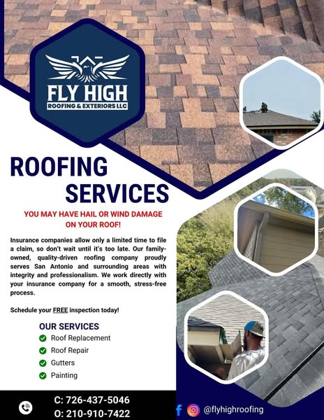 Hail can cause serious damage to your roof, even if it’s not immediately visible. If your home was hit, don’t wait—Fly High Roofing & Exteriors is here to help! We offer free roof inspections to check for any storm damage and help you navigate insurance claims.