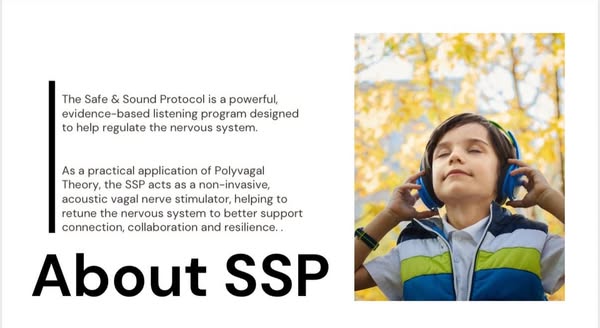 SSP is an evidence-based listening program designed to support regulation of the nervous system — the foundation for feeling safe, connected, and ready to learn.