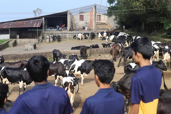 Learning Outcome for Students: The visit offered students a first-hand understanding of how agricultural innovation, sustainability, and economic self-sufficiency can coexist. They learned about the transformative impact of organic farming practices, the role of hybrid cattle in enhancing productivity, and the significance of linking economic ventures to spiritual and ecological values.