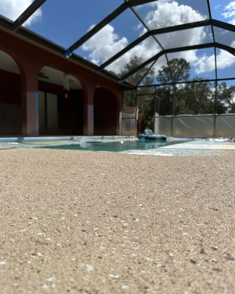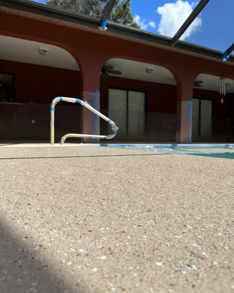 Another one completed. Our most durable Re-Surface application. Our Quartz System has H2 Cool Technology so it doesn’t get hot, then we top coat it with a clear Urethane for unparalleled toughness. Surpasses both dynamic and static coefficient of friction tests. Message us for a free estimate. 941-914-4239