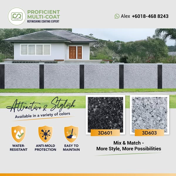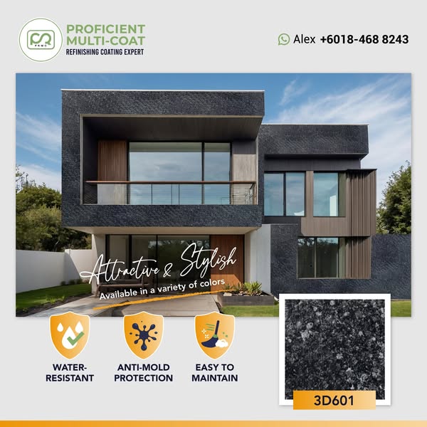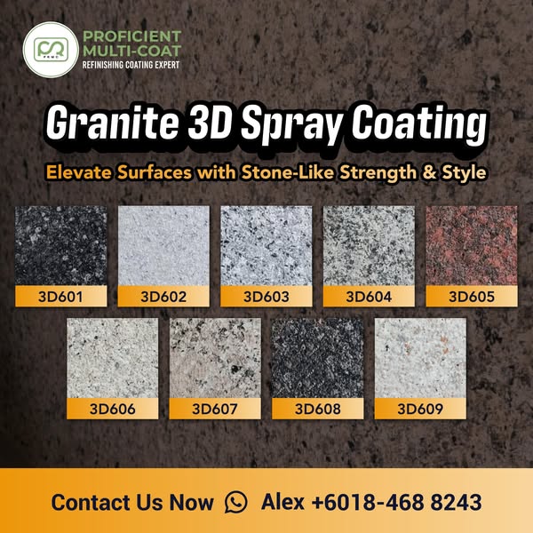 搜索关键词 3D granite coating, stone coating, wall coating, weather resistant coating, water repellent coating, building materials, construction coating, durable coating, Malaysia building materials, exterior wall coating优势 UV & Weather Resistant,Water-Repellent,Textured 3D Finish,Outlasts Paint,Superior Color Retention,Free onsite consultation and sample previews