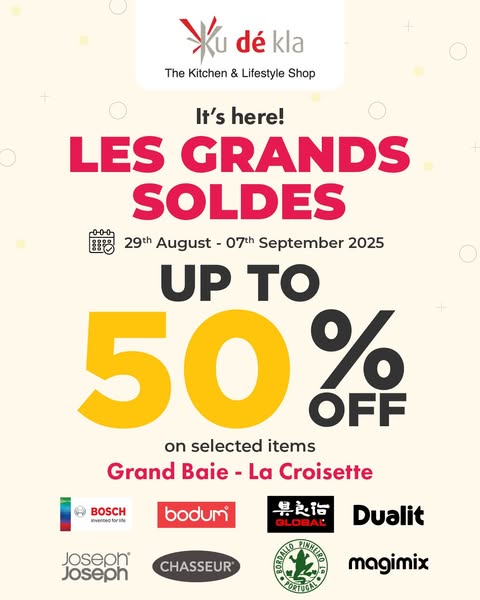 搜索关键词 La Croisette, Grand Sales, Shopping Mall, Mauritius, Late Night Shopping, Family Events, Discounts, Live Concert, Mystery Box, Styling Workshop优势 Up to 70% discounts,Late night shopping,Family-friendly events,Live concert,Mystery Box prizes,Workshops for all ages