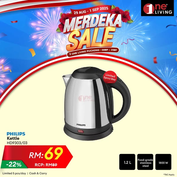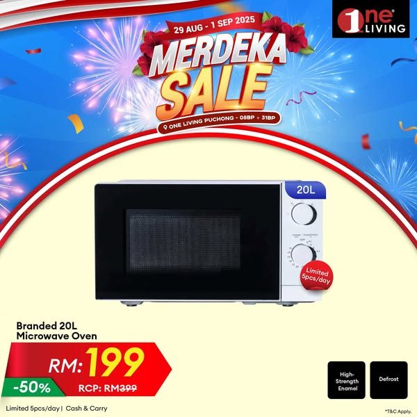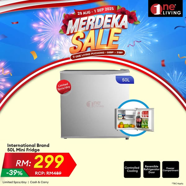 搜索关键词 one living malaysia, home appliances sale, kitchen appliances discount, merdeka sale puchong, free delivery appliances, installment plan appliances, refrigerator washing machine, smart tv soundbar, designer lighting downlight, air purifier vacuum cleaner优势 Discounted Prices,Wide Range of Products,Free Delivery (within selected area),Free Basic Set Up (within selected area),Installment up to 36 months
