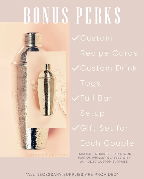 I’ve poured my heart into this one and I am SO excited to finally share it with you. Flirt + Fizz isn’t just a date night - it’s an experience. From custom cocktails to charcuterie, sweet bites, a styled photo booth, and surprise gifts made just for you…every detail has been created with intention (and a little sparkle). 💫
