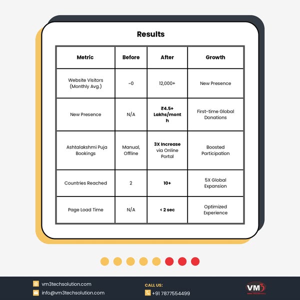 搜索关键词 digital transformation, religious trust, global donations, website design, puja bookings, digital marketing, India Singapore, Ashtalakshmi Puja, online booking, responsive website优势 Global reach expansion,Increased website traffic,Secure online donations and bookings,Modern responsive website