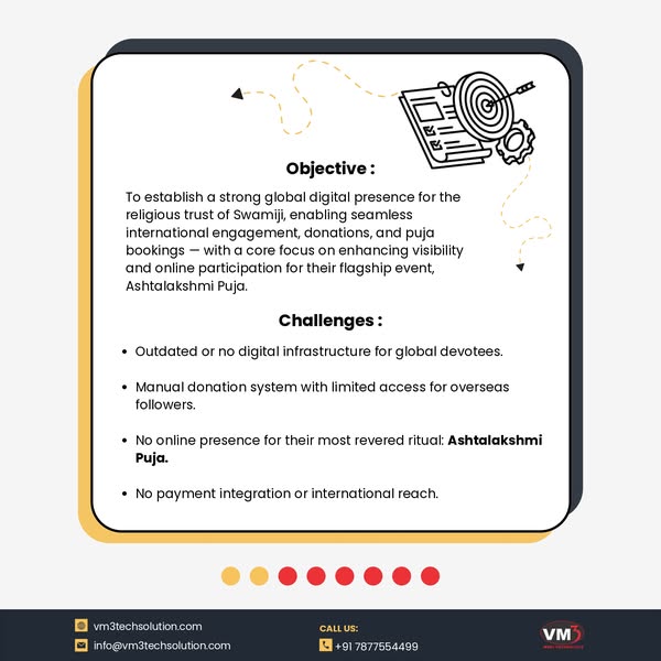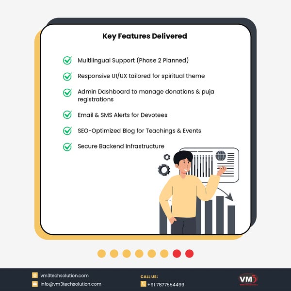 At VM3 Tech Solutions LLP, we specialize in blending cultural relevance with cutting-edge tech to build meaningful digital experiences. Ready to take your spiritual or service-based organization global?