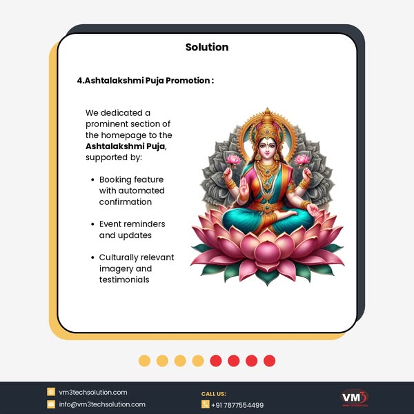 -Highlighted their flagship Ashtalakshmi Puja with booking, reminders & testimonials.