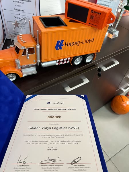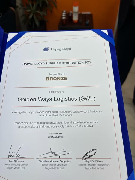 #GoldenWaysLogistics #HapagLloyd #SupplierRecognition #TopCarrier #MiddleEast #LogisticsExcellence #MaritimeLogistics