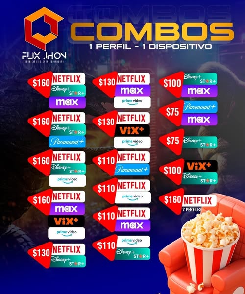 NO ESPERES MAS CONTRATA CON NOSOTROS LOS MEJORES COMBOS O PERFILES DE STREAMING 🎬🎞️EN " FLIXJHON OFICIAL" CALIDAD, ATENCION Y PRECIO.