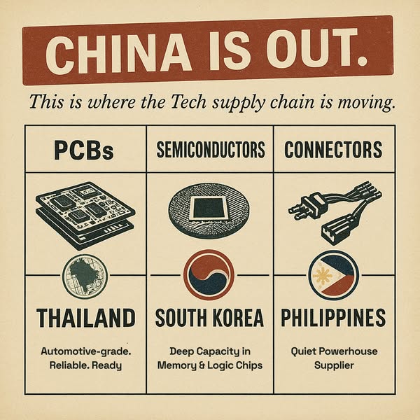 👇 Comment “TECH” to get 3 verified alternative suppliers for each key component: PCBs, Semiconductors, and Connectors — all from low-tariff regions.