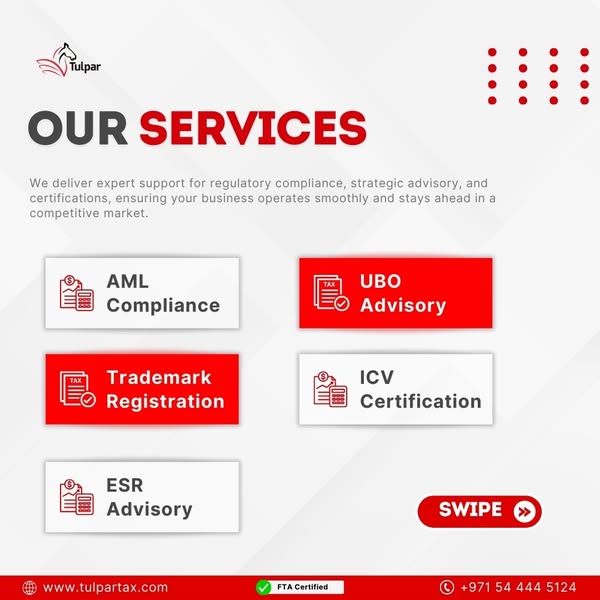 Get expert advice with a FREE consultation from Tulpar Global Taxation! Whether it’s tax planning, VAT filing, or legal services, our team is ready to guide your business toward success. 📍 Locations: Business Bay, Dubai | Ajman Free Zone | Sharjah Safe Zone 📞 Call Now: +971 54 444 5124 🌐
