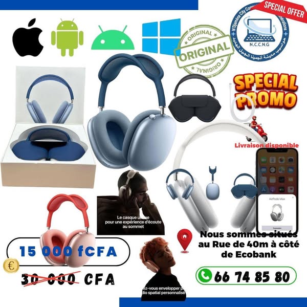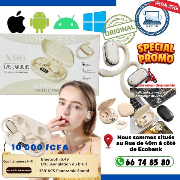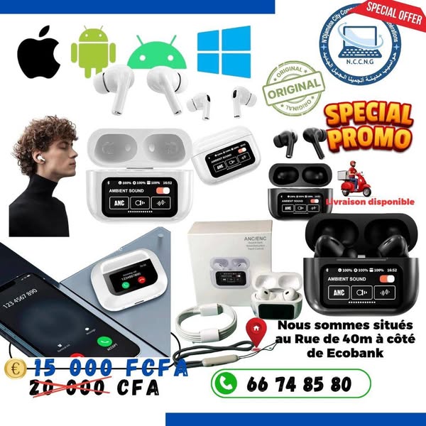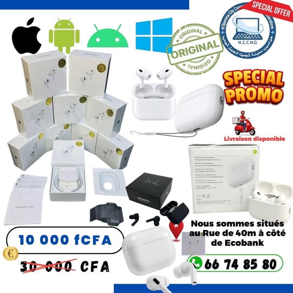搜索关键词 wireless earphones, bluetooth headphones, original earphones, Chad City Computers, iPhone Android compatible, long battery life, HD sound quality, Ndjamena electronics, reliable audio, comfortable earbuds优势 Fast and stable Bluetooth connection,Clear and powerful HD sound,Modern and comfortable design,Compatible with iPhone, Android, Microsoft, and Windows,Excellent battery life,Original quality guaranteed