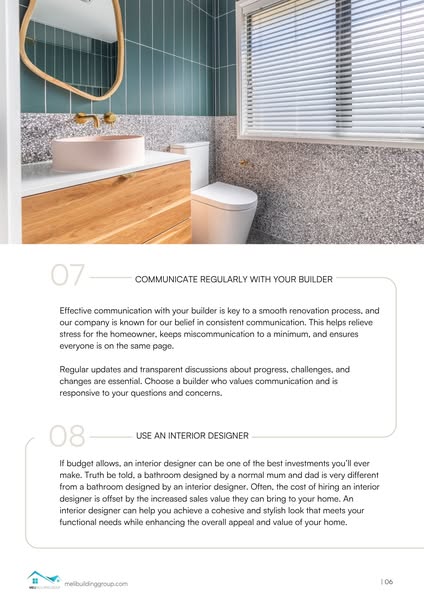 搜索关键词 melbourne builder, renovation guide, home renovation, building services, regional victoria builder, digital renovation guide, printed renovation guide, melibuildinggroup, renovation services, australia renovation优势 Handy renovation guide,Digital and printed versions available,Personal assistance offered