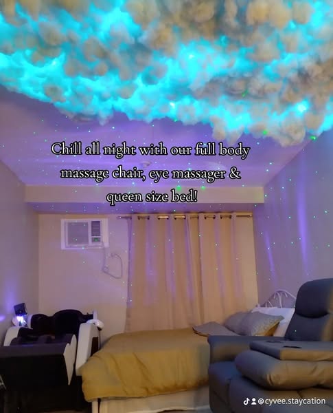 搜索关键词 staycation getaway, discount staycation, relaxing vacation, Netflix and chill, romantic getaway, vacation rentals, massage chair, fully equipped kitchen, karaoke fun, surprise setups优势 Discounted price,Bathtub with free bath items,Massage chair,Entertainment (Netflix, Disney+, Karaoke, Games),Fully equipped kitchen,Optional surprise setups and spa services