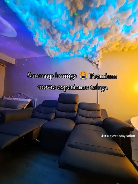 搜索关键词 staycation getaway, relaxation fun, netflix disney, massage karaoke, cooking facilities, early reservation discount, couple games, affordable surprise, room massage spa, Manila staycation优势 Bathtub with free bath bomb,Massage chair,Netflix & Disney+ access,Karaoke with 2 mics,Cooking facilities,Discount for early reservation
