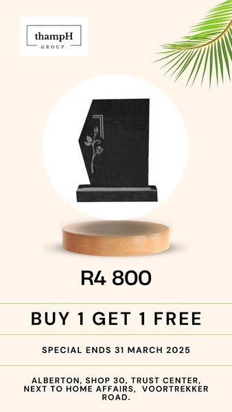 搜索关键词 Easter tombstone special, granite tombstones, custom tombstone design, affordable tombstones, fast delivery tombstones, memorial stones Alberton, thampH Group tombstones, tombstone prices, trusted tombstone company, tombstone South Africa优势 Unbeatable prices,Custom designs available,High quality,Fast delivery