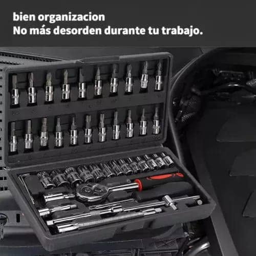 $290 PROMOCIÓN JUEGO DE HERRAMIENTAS MECANICAS CON DADOS DE ACERO Y MATRACA 46 PIEZAS!!