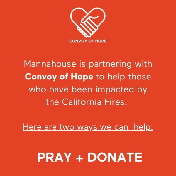 Mannahouse is partnering with @convoyofhope to provide aid to those who have been impacted by the California Fires.