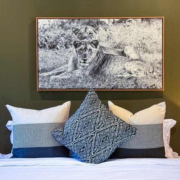At Luleka Safari Lodge, the wild isn't just outside — it’s framed on the walls too. We recently had the honour of transforming Brenda’s striking black and white wildlife photography into gallery-quality framed canvas prints for the lodge, creating an interior that reflects the soul of the Manyoni Reserve.