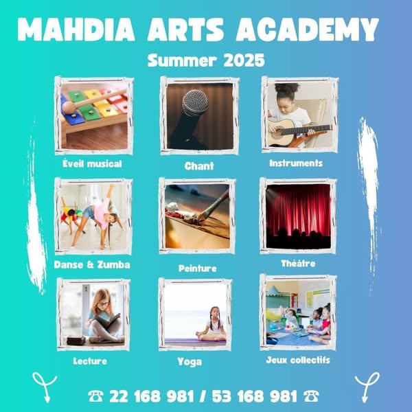 📍 Mahdia Arts Academy, rue al Khalil petite ceinture Zouila Mahdia près du jardin d'enfants Dahdah