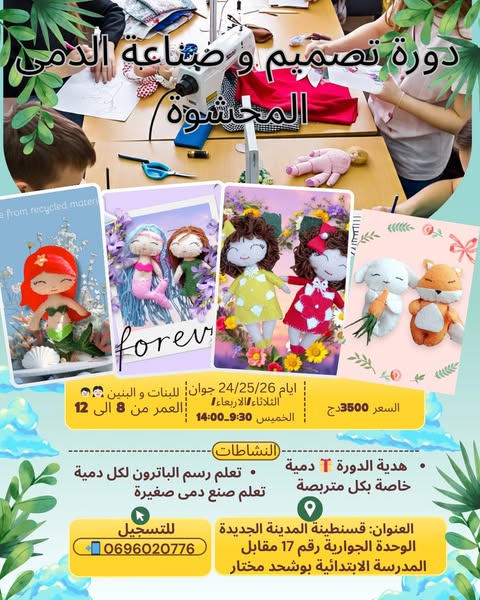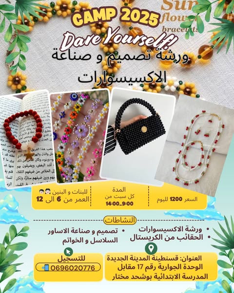 搜索关键词 summer school, kids activities, english learning, creative workshops, educational games, safe summer camp, children summer activities, summer education, fun learning, Algeria summer camp优势 English language learning,Creative activities (accessories design, handmade dolls),Educational games,Safe environment,Qualified instructors,Participation certificates